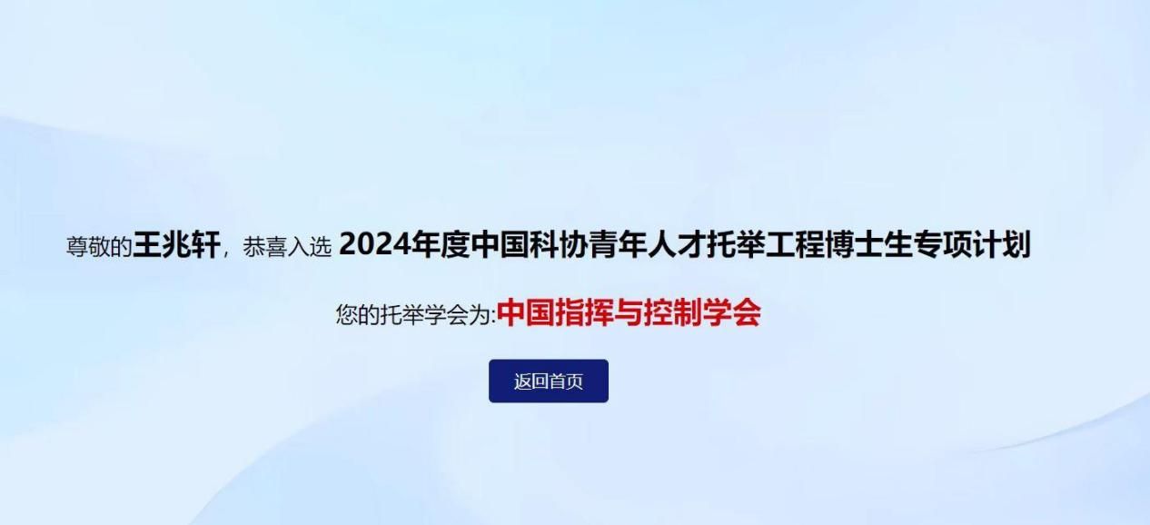 2020级博士研究生王兆轩入选该项计划,托举学会为中国指挥与控制学会。
