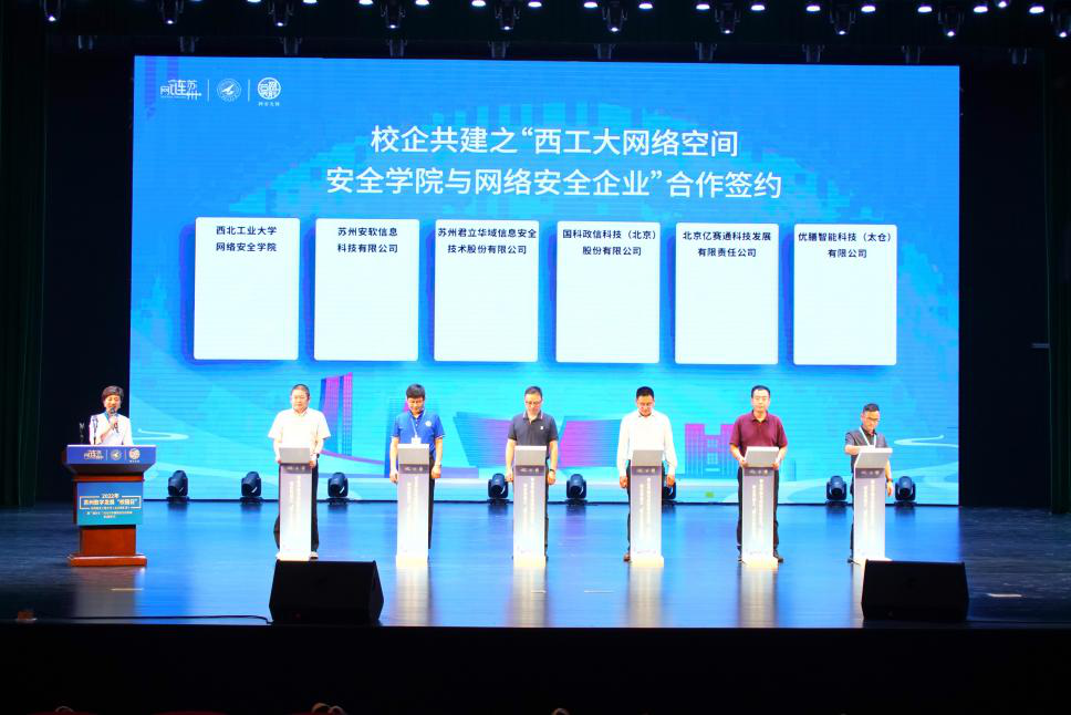 与苏州安软信息科技有限公司等5家知名网络安全企业签订校企合作协议,推动校企产学研深度融合,加快推进网络空间安全相关前沿技术的成果转化,实现资源共享、优势互补,共同发展。