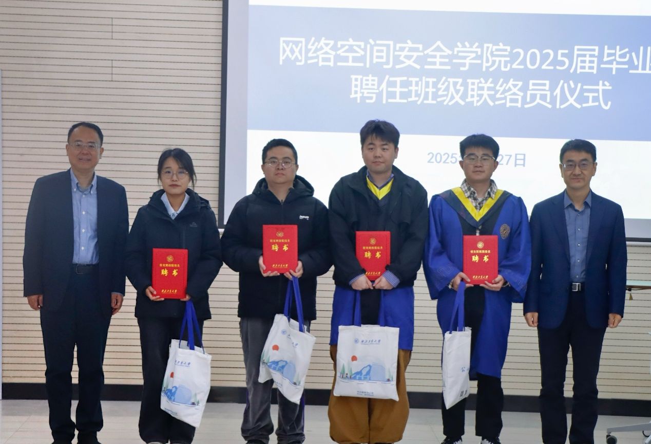 2025届研究生毕业生班级联络员聘任仪式”,杜瑶宣读了“关于聘任2025届毕业生班级联络员的决定”,张文涛、刘志强为班级联络员颁发聘书。