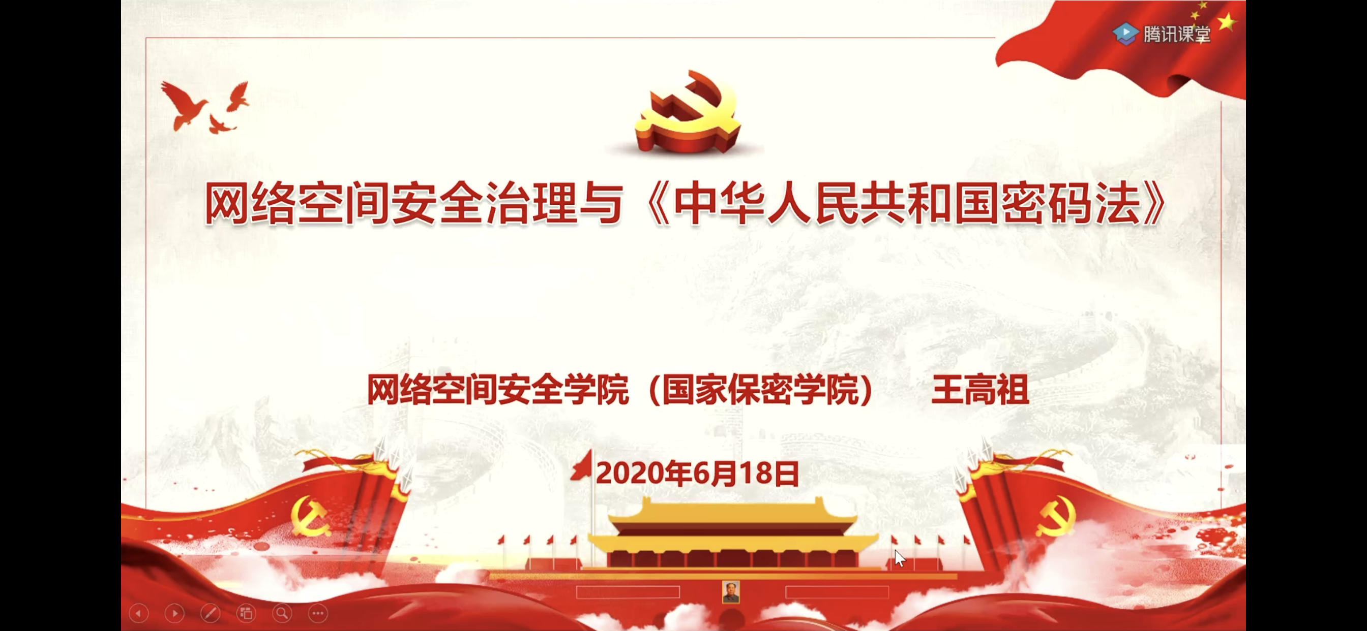 组织开展《中华人民共和国密码法》线上宣讲活动,学院党总支副书记(主持工作)王高祖担任主讲,全院学生和部分2019级信息大类学生参加宣讲活动。本次活动也是伦理片