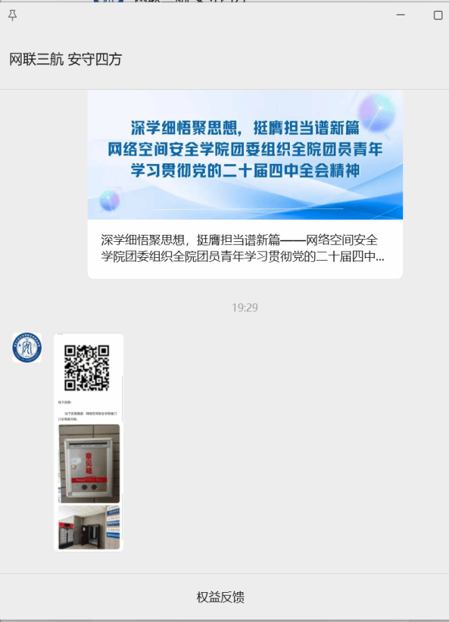 学院于长安校区网安学院楼二层设置固定意见箱,便于师生随时投递书面材料。院学生会权益服务中心将于每周日统一收取,并于七个工作日内完成整理与分类。针对教学管理、后勤服务等专项议题,将转交跨部门联席会议研议,处理结果通过权益月报予以公布,并严格遵循保密规范。