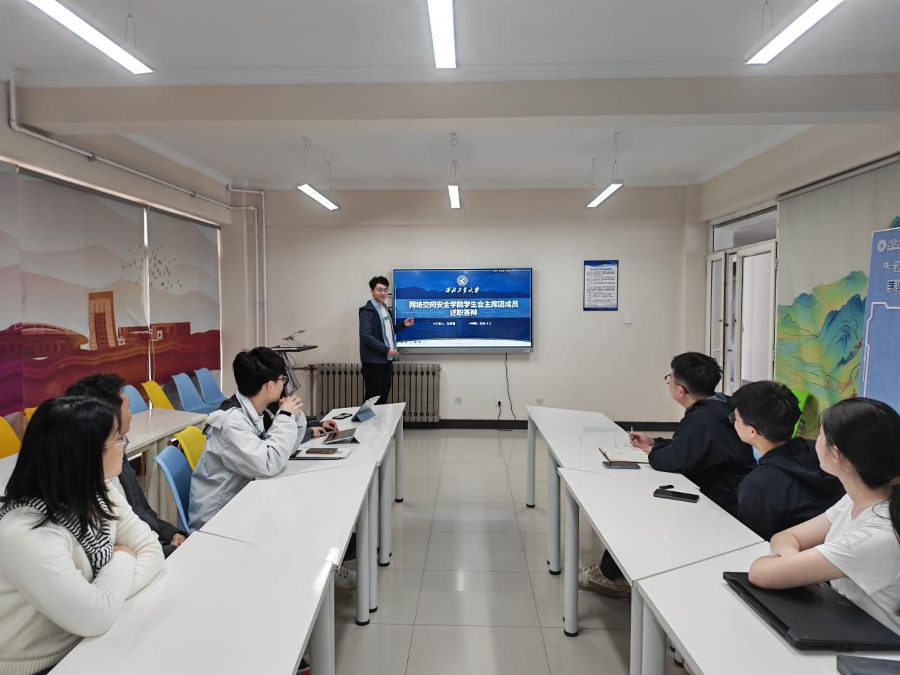宣传中心负责人紧扣宣传阵地建设与网络文化育人要求,围绕官方新媒体平台运营、原创宣传内容创作、各类活动宣传报道、网络正能量传播等工作进行述职,以多元形式讲好网安学子故事、传递青春正能量,筑牢学院宣传思想阵地。