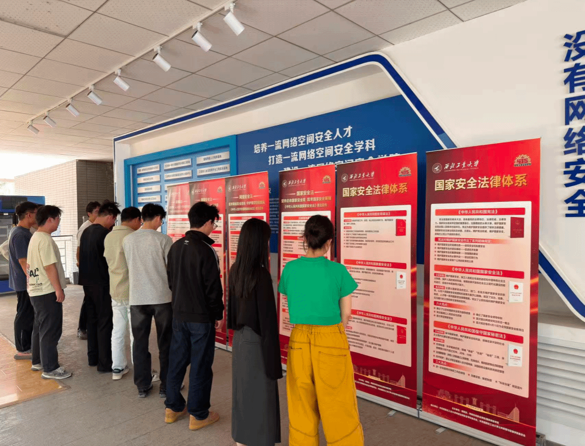 国家安全法律体系展于4月15日正式开展,吸引了师生参观学习。展览结合两学院专业特色,系统展示了《中华人民共和国国家安全法》《中华人民共和国网络安全法》《中华人民共和国数据安全法》等核心法律法规的核心条款与实践要求,通过图文展板、典型案例剖析等形式,生动解读了网络攻击、数据泄露、间谍活动等违法违规行为的法律责任,让师生直观感受国家安全法治的严肃性与重要性。