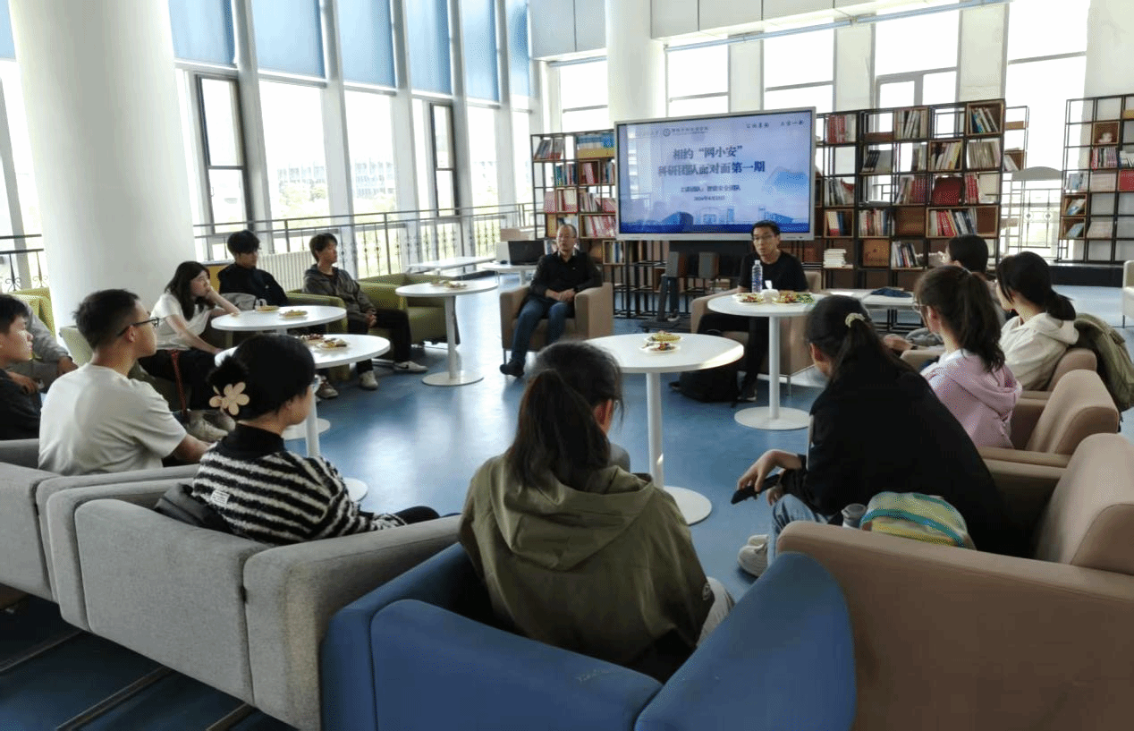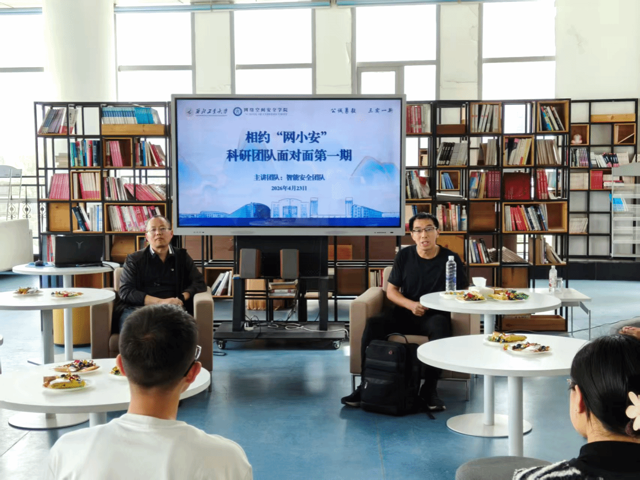 在长安校区开展“相约‘网小安’——科研团队面对面”首场对接交流活动,邀请智能安全团队与同学们围绕团队科研方向与学生个人发展等问题展开深入交流,团队负责人杨黎斌副教授、高德宏副教授以及学工主管方雪、专职辅导员陈松玲参加本次活动。