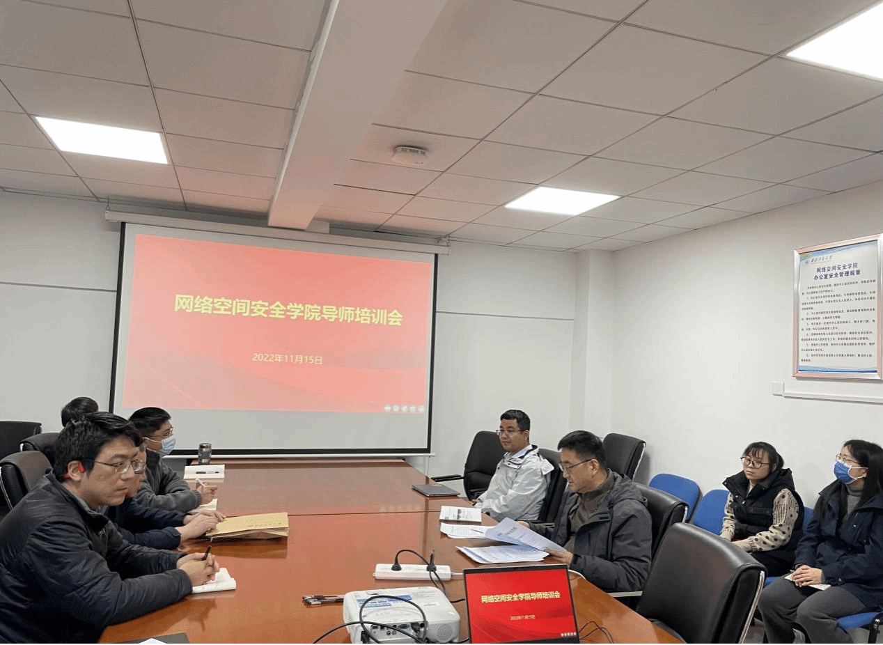 在爱生楼401会议室举行2022年度研究生导师培训。会议由网安学院副院长刘志强主持,全体研究生导师参加了会议。