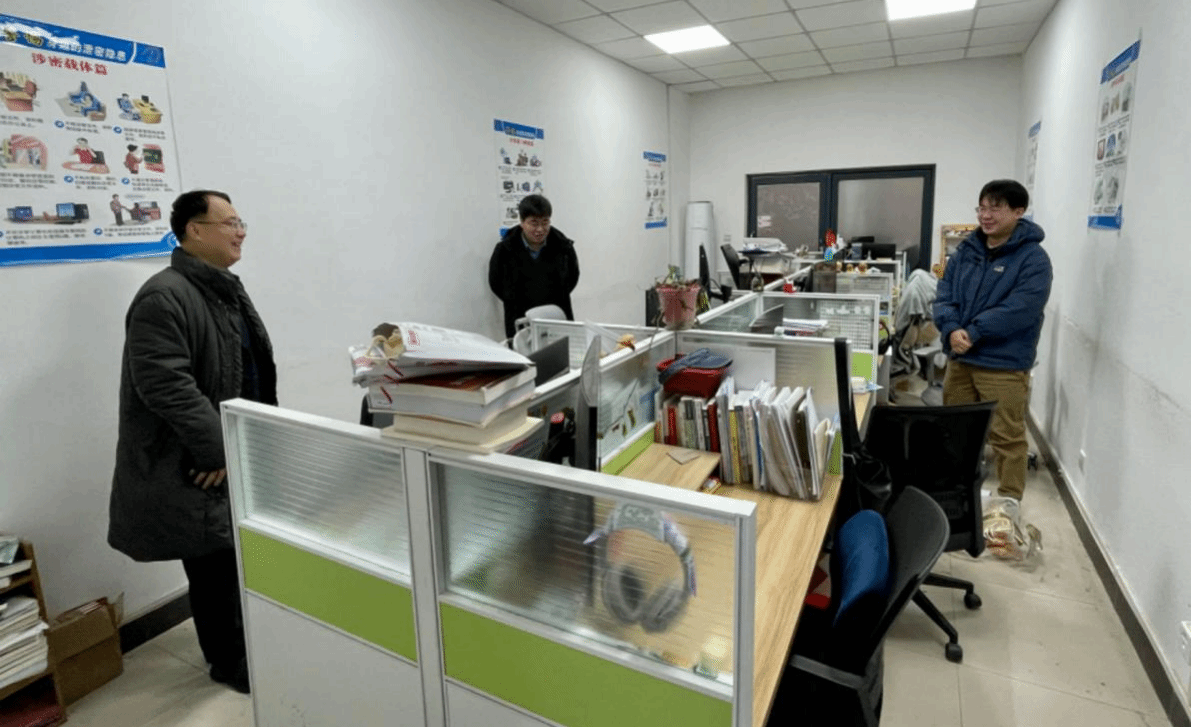 2月3日,院长王震、党总支书记张文涛、副书记杜瑶一行赴长安校区看望寒假留校学生,并对学院楼机房、会议室、研习室、办公室、图书角等公共区域进行安全检查。辅导员王昌昌、戚明平等陪同参加。