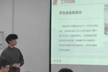 第二项,学生会部门负责人述职。部门负责人从各自部门工作情况出发,依次从部门职责、工作展开情况、不足之处和未来规划四个方面,对本学年的工作进行了全盘梳理与总结。在汇报过程中,部门负责人详细讲述了部门的工作成果,同时指出了部门所存在的问题,并对其提出了应对方案。大家表示在接下来的时间里,将继续保持优良作风,秉持服务意识,用劳动、智慧和汗水书写伦理片
