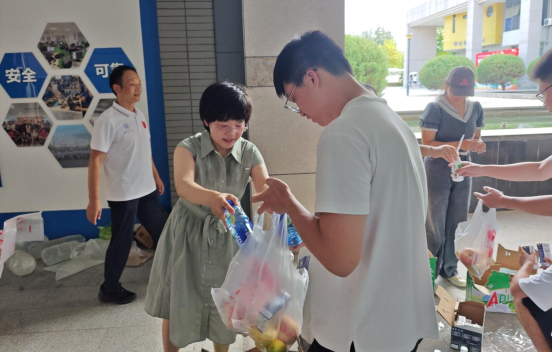 8月31日下午,学院领导与学工干部、辅导员慰问正在军训的2023级本科生,提士气、送温暖,将慰问品送到每一位同学手中。