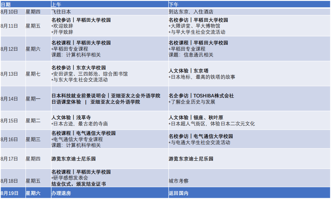 组织2023年暑假期间,赴日本东京大学、早稻田大学、电气通信大学等进行为期10天的访学交流项目。