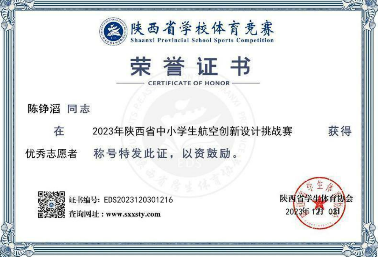 球场之外,陈铮滔同样是一名有温度的实践者。他参与了第三期“安守四方”反诈公开课,利用网络平台为广大群众普及反诈知识;2022年参与学校疫情防控志愿服务,奔赴一线,协助秩序维护与信息登记;2023年,他投身“心筑烛梦”第七季线上支教项目,为广西融水的乡村孩子带去温暖与知识;同年,还在陕西省中小学生航空设计挑战赛中担任志愿者,获评“优秀志愿者”称号。他用脚步丈量责任,用心灵传递光热。