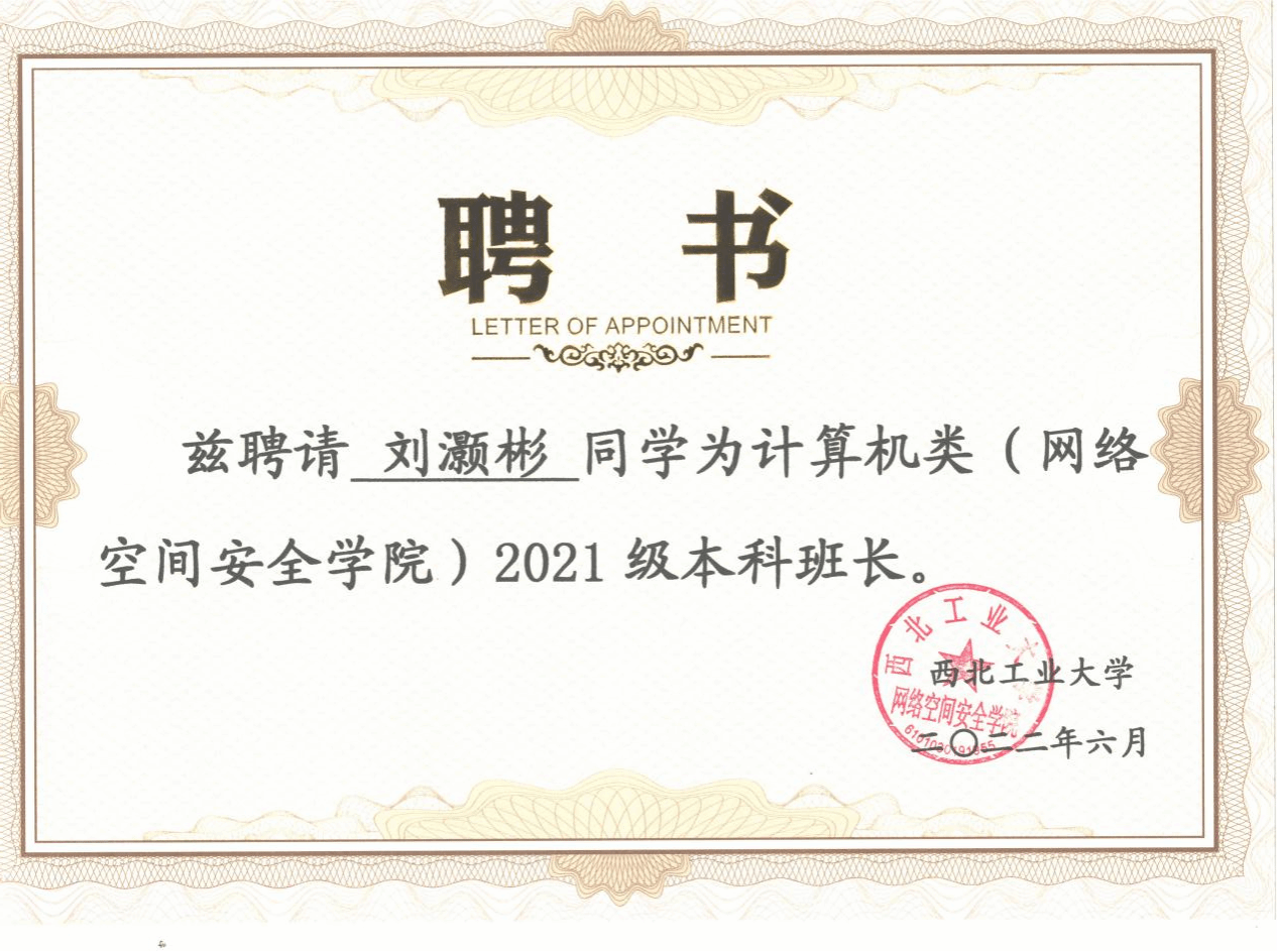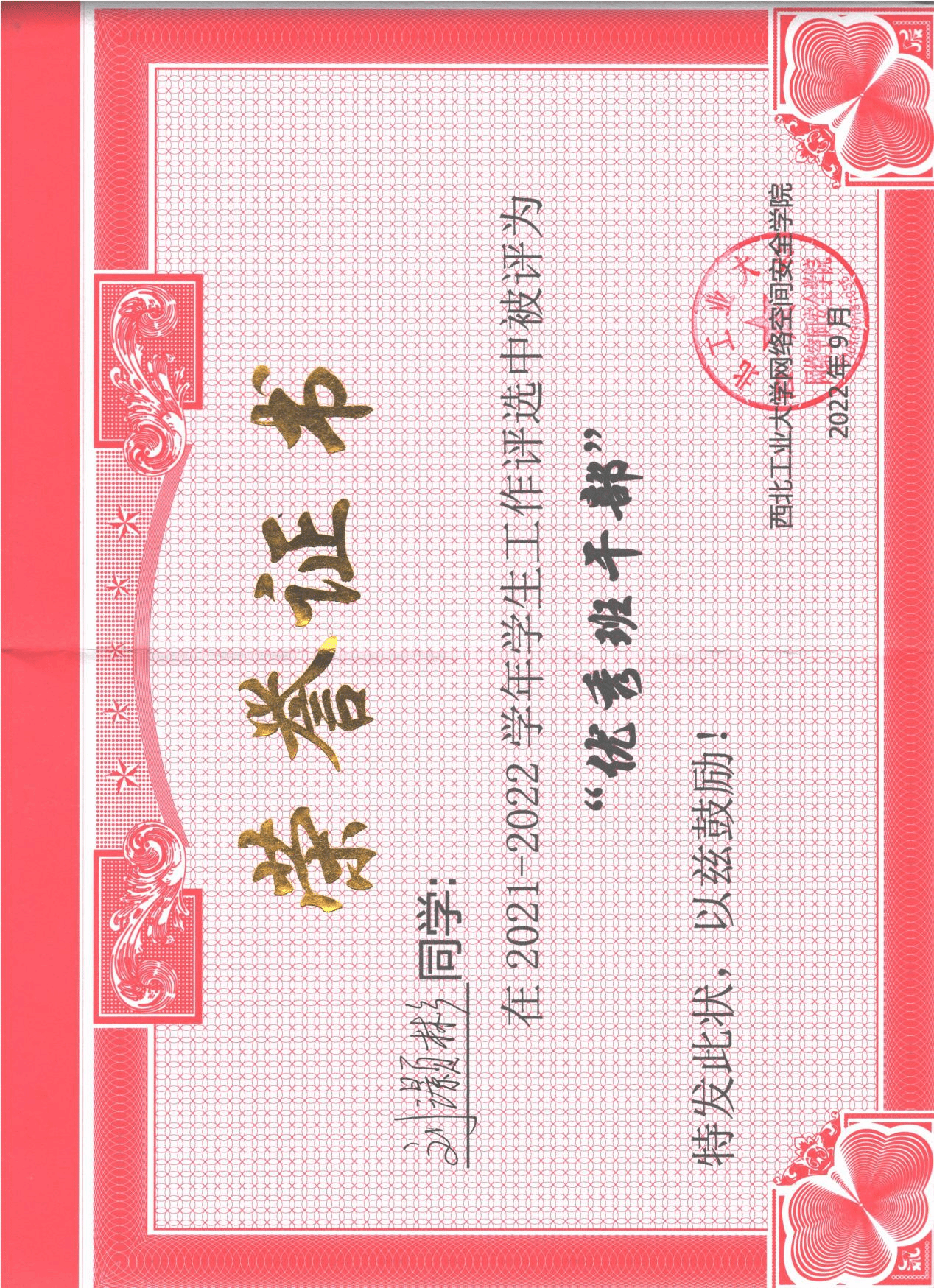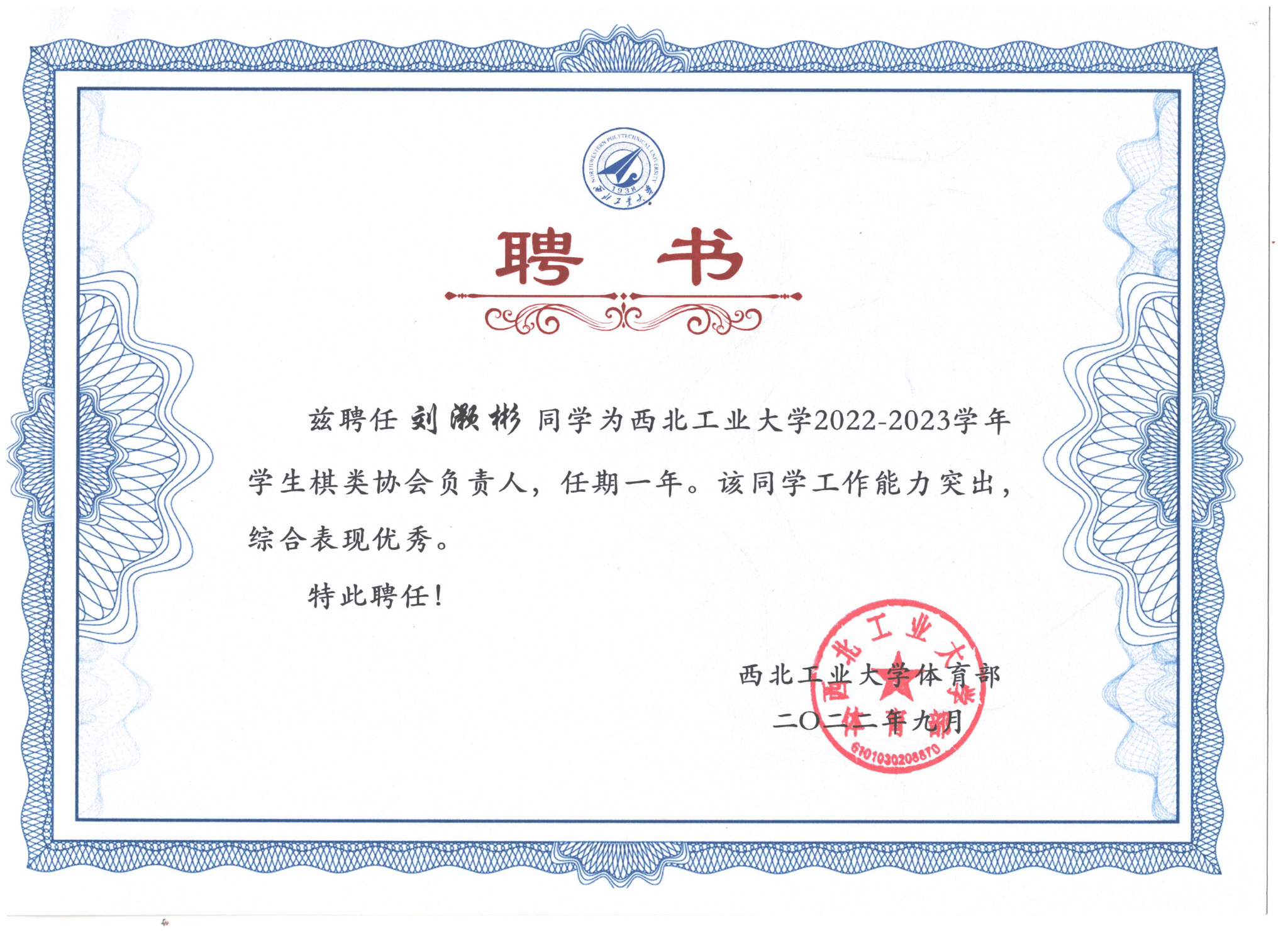 团委副书记、2021级大班长、学生棋类协会会长等职务,曾获校二等奖学金,优秀毕业生、优秀大学生、优秀共青团员、优秀班干部等荣誉称号。
