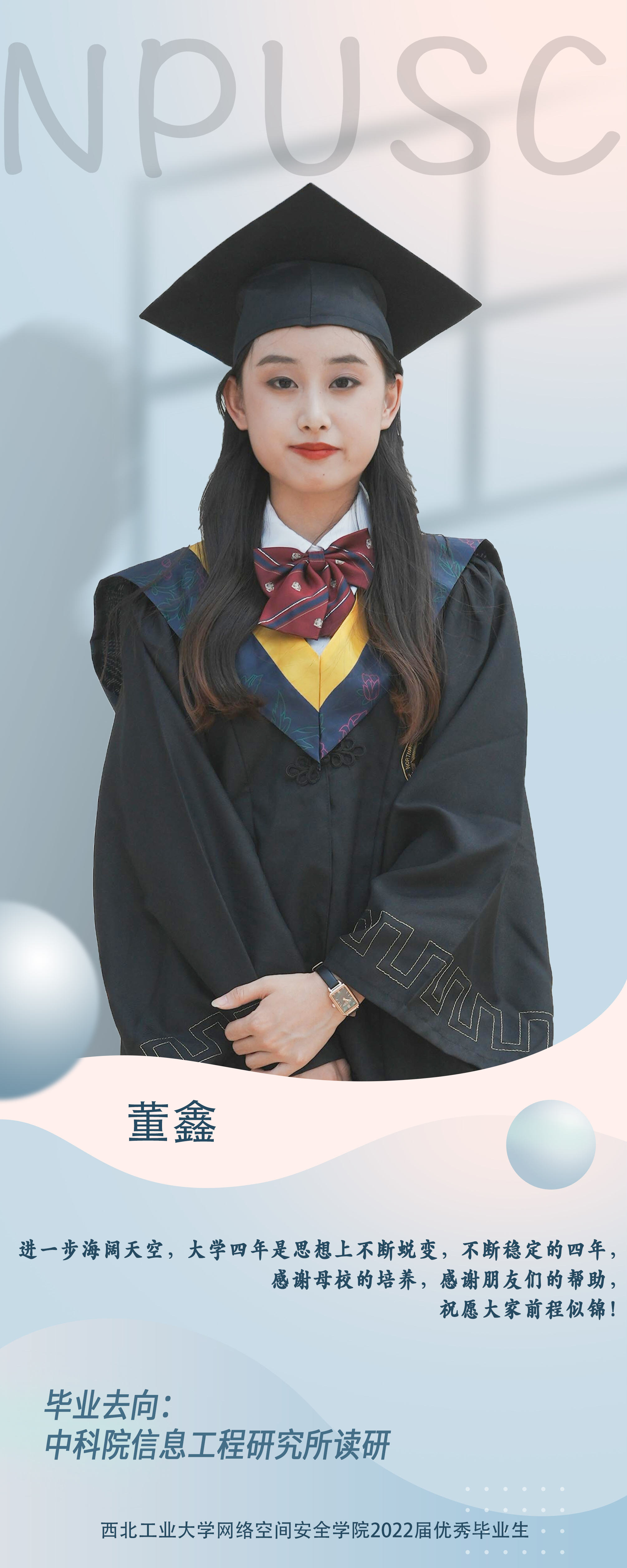 学院2018级本科生董鑫。本科期间学分绩排名7/59,综合排名3/59,。曾获得国家奖学金、校级奖学金,院级奖学金多项,中国机器人大赛国家级一等奖,美国大学生数学建模竞赛国际级一等奖等竞赛奖项,连续三次获得伦理片
