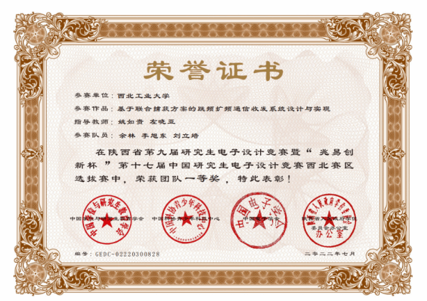 2022年第十七届中国研究生电子设计竞赛全国三等奖