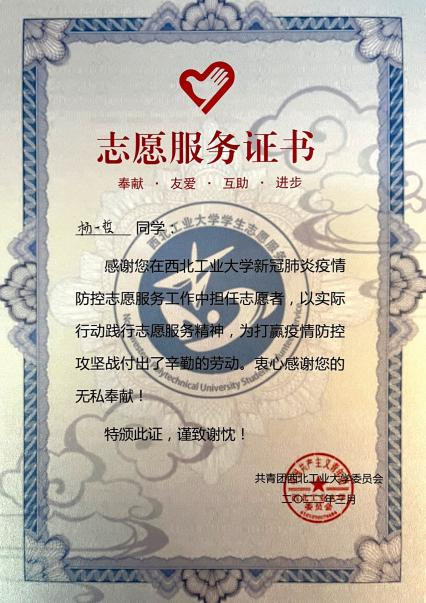 心之所向,素履以往;青衿之志,履践致远。从2017年到2024年,从本科生到研究生,再到走向工作岗位,西工大见证了我七载青春岁月。“余虽不敏,然余诚矣”,我一直真诚对待学习、工作和生活中的每一件事,坚信精诚所至,金石为开。回顾过往,既有良师益友相伴,也得到了学校和学院的悉心栽培,虽路途曲折,偶有迷茫,但我已成长为了勇敢而坚定之人。告别之际,心怀感恩,感谢同学们的陪伴和鼓励,感谢学校和老师的培养和教育,也感谢全力以赴的自己。云程发轫,万里可期,未来,我将秉承西工大“公诚勇毅”的校训和“三实一新”的校风,走向航天科工集团某研发部门的工作岗位,继续为国防事业贡献力量。