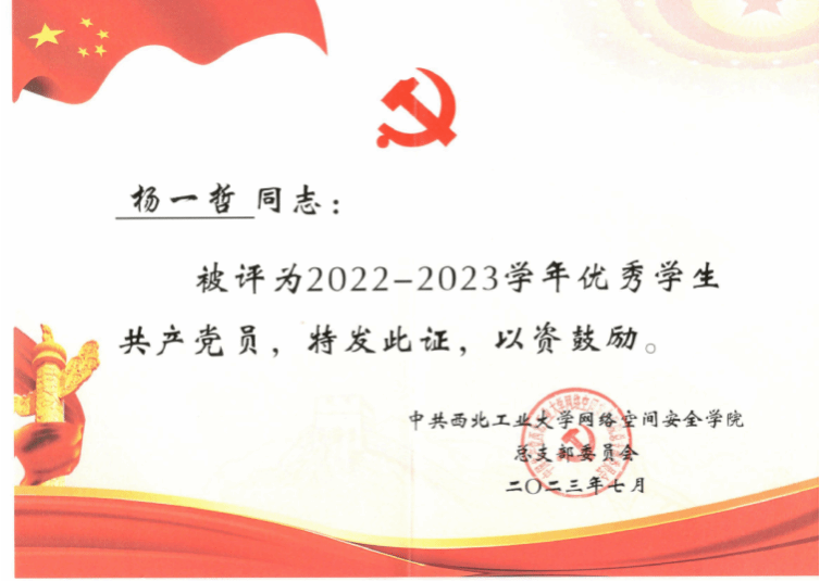 学生第七党支部宣传委员兼纪检委员,杨一哲积极参与学生党建工作和支委培训,并协助书记、副书记,推动积极分子、发展对象的培养和发展党员的工作。此外,她还还负责支部的党费收缴工作。同时,作为伦理片