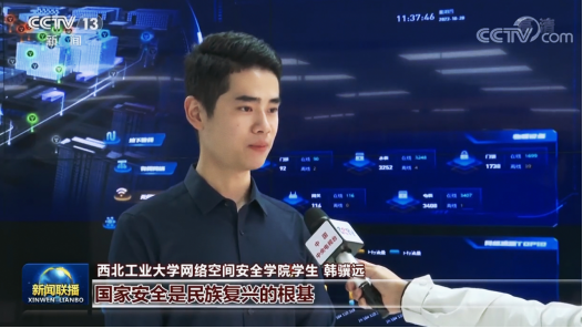 2022年10月,党的二十大在北京胜利召开,韩骥远代表学校接受了央视记者的采访,学习热议党的二十大报告中有关国家安全与网络强国的重要内容,被《新闻联播》次头条专题报道。