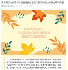 读研。本科期间综合排名第二,曾获校一等奖学金、吴亚军奖学金,连续三年获评校优秀大学生。申请软著一项,获得全国大学生信息安全作品赛二等奖、全国大学生英语竞赛特等奖等二十余项竞赛获奖。曾任班长、伦理片