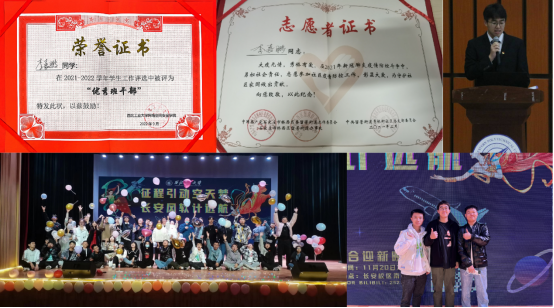 学生会主席团成员。在此期间,他尽职尽责,充分发挥了院-班之间的桥梁纽带作用,为学院学工建设做出重大贡献。同时,他积极参与社会服务工作,尤其是疫情期间多次进行志愿服务,以实际行动践行工大人的担当精神。