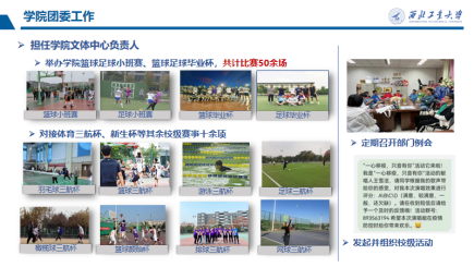 同时,戴鸿图曾担任学院文体中心负责人,举办学院篮球足球小班赛、篮球足球毕业杯,共计大小比赛50余场,对接体育三航杯、新生杯等校级赛事10余项。