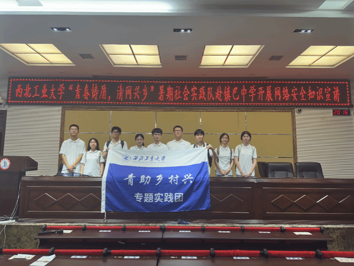 7月8日,实践队来到镇巴县,与当地电商企业共话清朗数字乡村建设,在镇巴中学开展反诈宣讲与科普讲座。队员以专业技能筑牢乡村网络安全屏障,为乡村振兴注入网安学子力量。