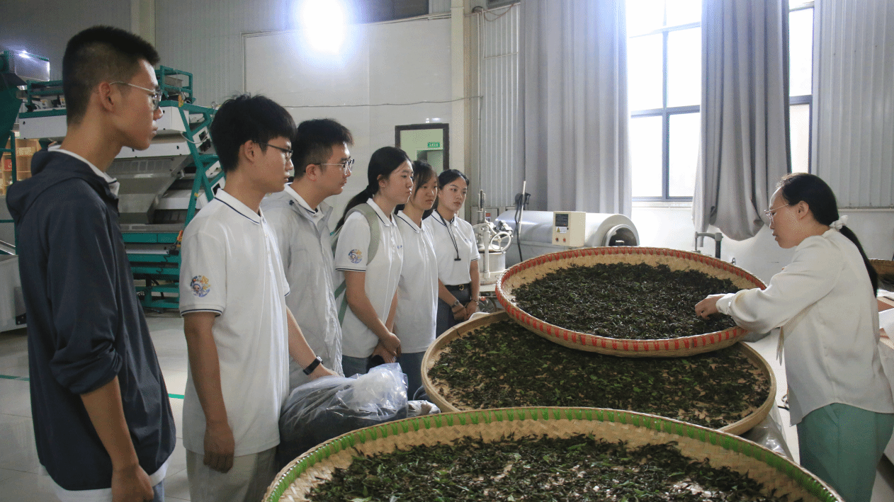 在镇巴县泾洋街道办电商运营服务中心,实践队实地探寻数字技术如何赋能地方特色产业、助力乡村振兴。汉中市芳悦茶叶科技有限公司李茂芳为实践队员讲解了“一片叶子”带动农民致富、推动区域经济发展的实践路径,并带领实践队员参观了茶叶加工生产车间和电商平台。通过对现代化设备的现场观摩,队员们对茶叶制作和销售流程中的智能化、数字化环节有了直观认知,深刻感受到科技在传统产业中焕发出的新活力,也进一步理解了数字乡村建设的技术支撑与产业实践逻辑。李茂芳还与实践队就人工智能赋能电商、电商中网络安全风险等方面进行了交流。