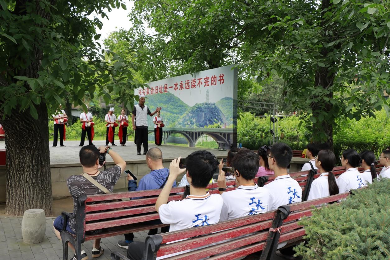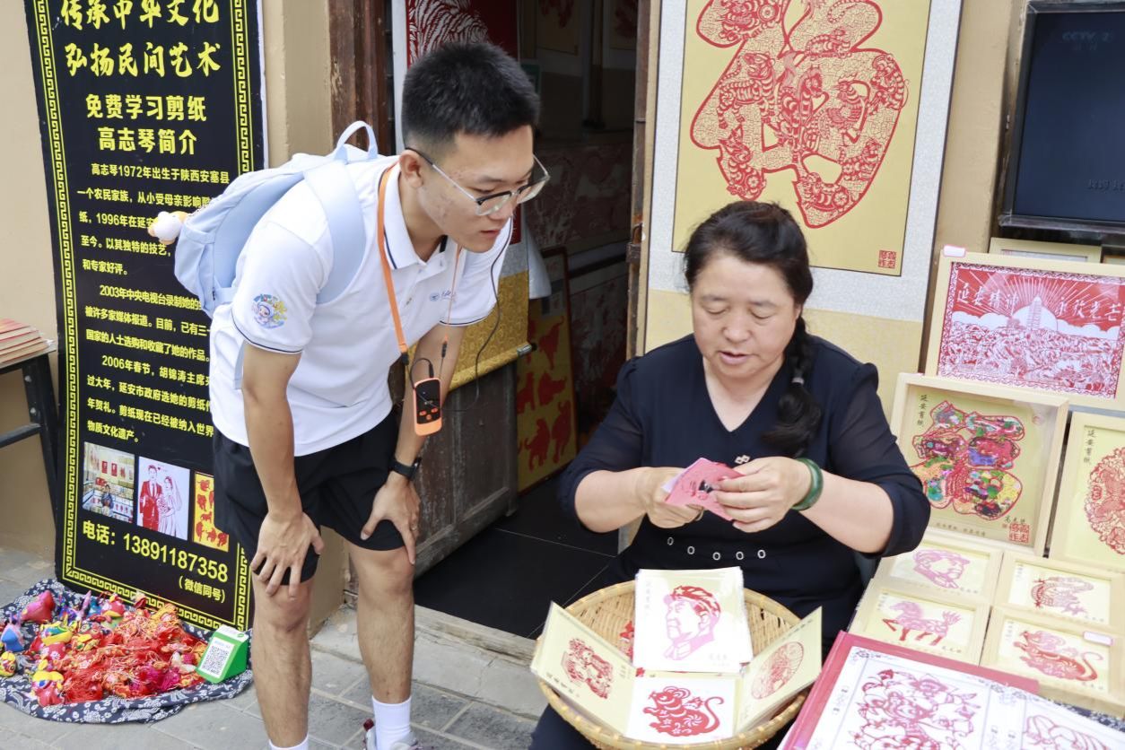 实践队在张思德纪念广场诵读《为人民服务》,铿锵誓言久久回荡在广场中央,传承着为民不变的初心;观看红秀《延安・延安》,沉浸式舞台演绎让队员们亲历延安革命岁月的激情与热血;学唱抗日军政大学校歌,在激昂旋律中纪念抗日战争胜利80周年,让红色精神融入血脉;于王家坪革命旧址观赏安塞腰鼓表演,激昂鼓点与陕北民歌交织,深刻感受到延安人民的豪情与力量,又与《走进延安》作者黄晓非老师深度交流,和非遗剪纸传承人对话学艺,感受民间艺术里的红色基因,让每一场教学都成为精神淬炼的生动课堂。