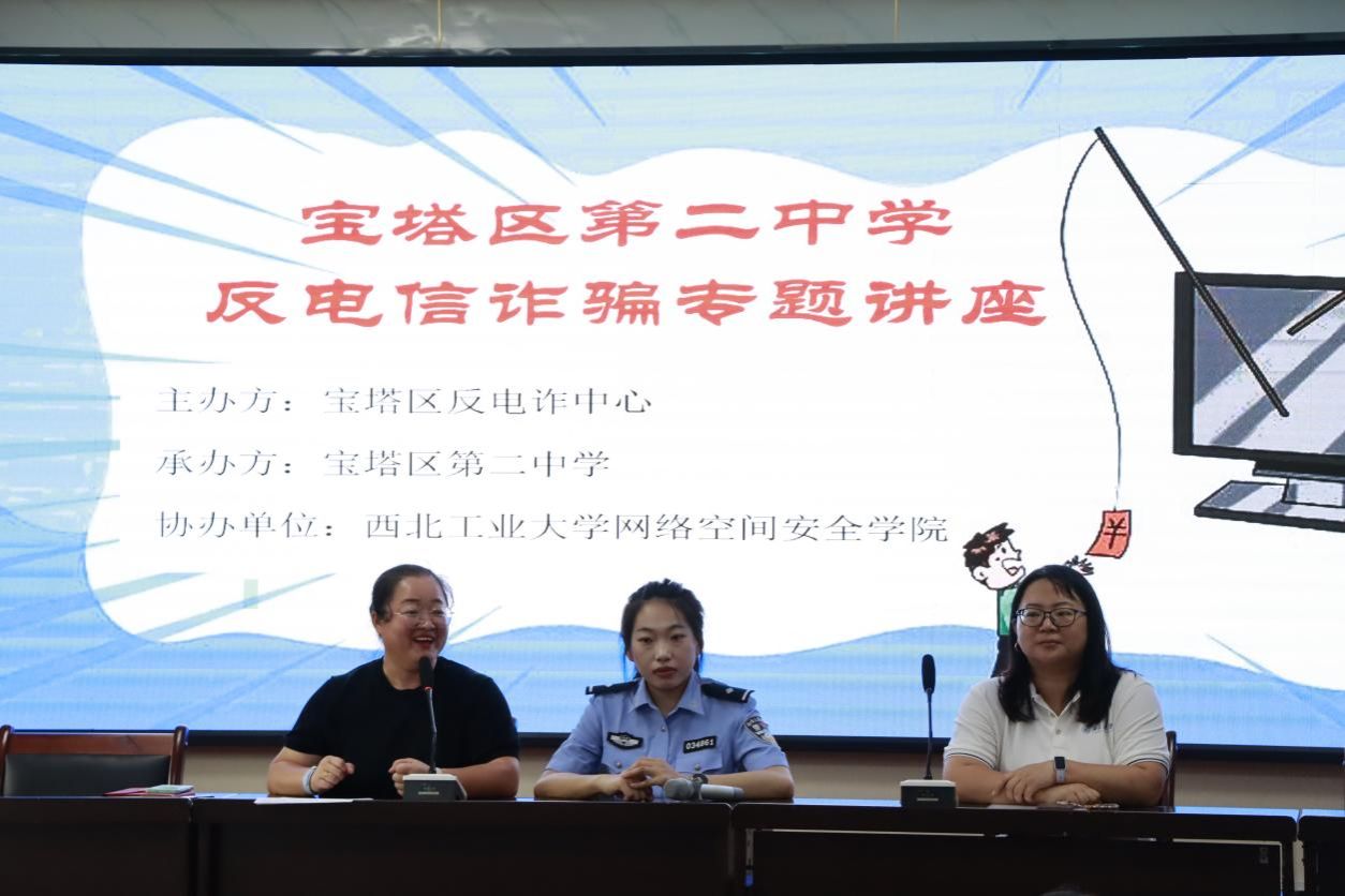 在探访革命旧址之余,实践队走进宝塔区第二中学,联合宝塔区公安分局开展“e路守护·反诈同行”主题宣传活动。队员们通过案例讲解、互动问答、情景模拟等形式,为高一高二的同学们揭秘网络诈骗套路,筑牢校园安全防线。实践队在宝塔山下,用实际行动让延安精神在网络空间延伸,用技术赋能安全、以青春践行担当。