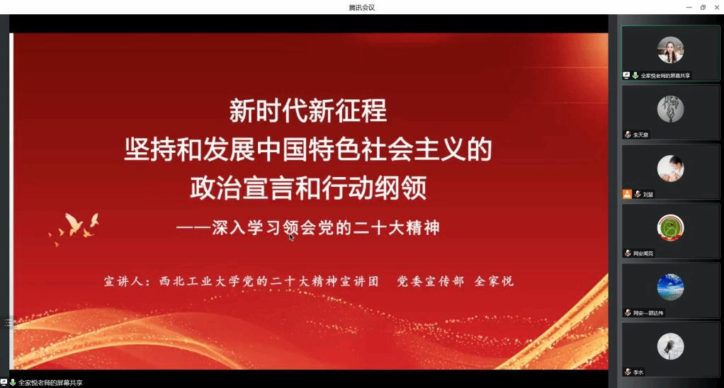 邀请学校宣传部副部长全家悦副教授为学院师生宣讲党的二十大精神。此次宣讲由学院党总支副书记禹亮主持,学院师生近两百人参加党课,根据疫情防控要求,宣讲采取线上形式召开。