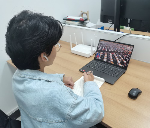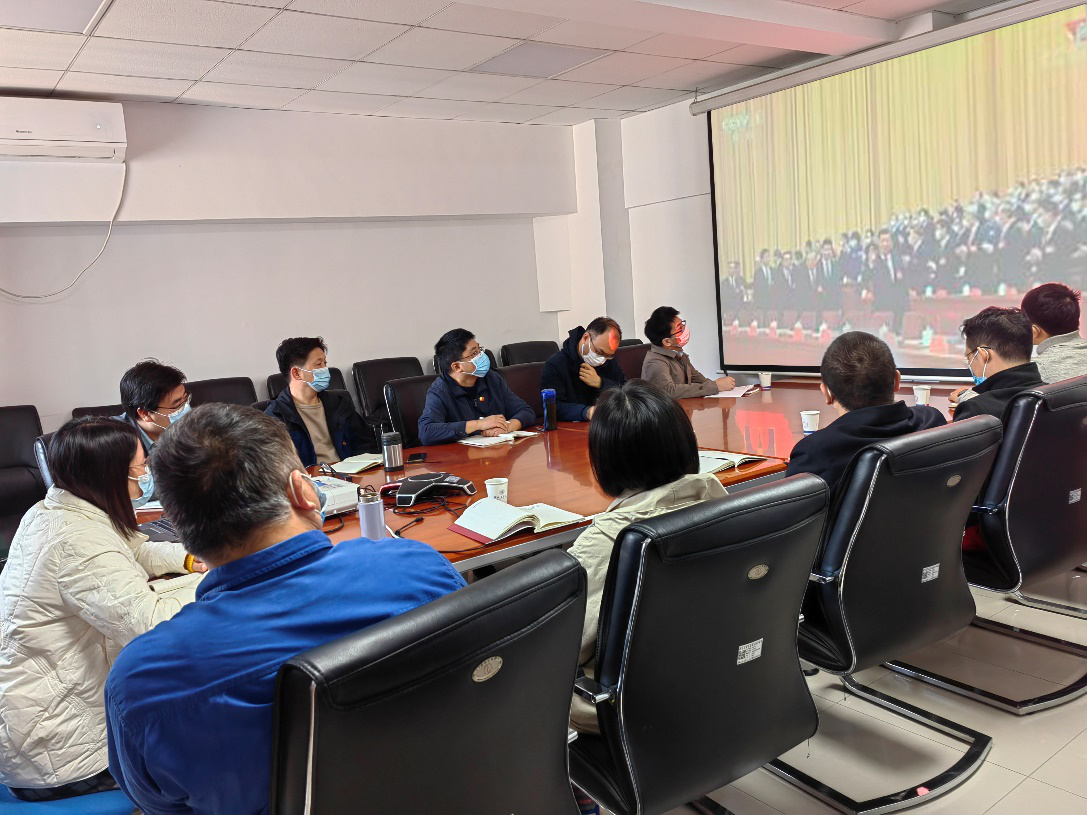 学院领导班子、党总支理论学习中心组成员及教工党支部书记集中观看开幕会直播