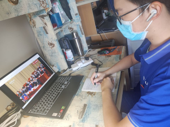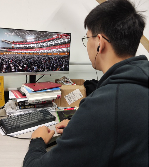 学生党员王浩宇:在国际风云加速变幻的今天,我们作为当代大学生,社会主义现代化建设的接班人,更应勇立潮头争做先锋,做有底气有担当的青年。刻苦学习,牢牢掌握理论知识,自信自强,守正创新,踔厉奋发,勇毅前行,才能更好地全面建设社会主义现代化强国,实现中华民族的伟大复兴。