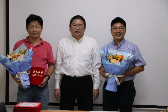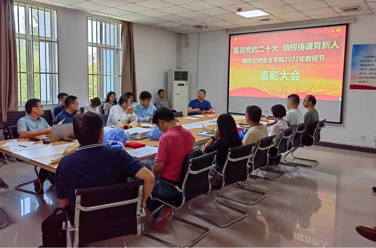 接着,举行学院2022年教师节表彰大会。张盛兵院长宣读了表彰名单,共表彰校级获奖的2位老师,以及院级获奖的10位老师。学院领导为获奖人员一一颁发荣誉证书,并赠上鲜花。张院长表示,教师节表彰,无论是对教师本人,还是对学院,都是一件大事。对个人来说,表彰是对教师辛勤工作的肯定,也是教师职业生涯的骄傲和荣誉。对学院来讲,获奖教师为人才培养、科学研究和学院、学校事业发展做出了独特而重要的贡献,能起到树立典型,引领示范的作用,从而鼓励全院师生积极投身到立德树人的工作中。同时,教师节表彰,也是学院一笔无形和无价的宝贵财富,体现着学院尊崇师道的文化理念,更是学院全面加强和推进文化建设的重要抓手。希望通过这样的活动,能够让获奖教师有一种荣誉感、更有一种网安人的仪式感,让尊师重教的文化在网安学院得以传承和发扬。