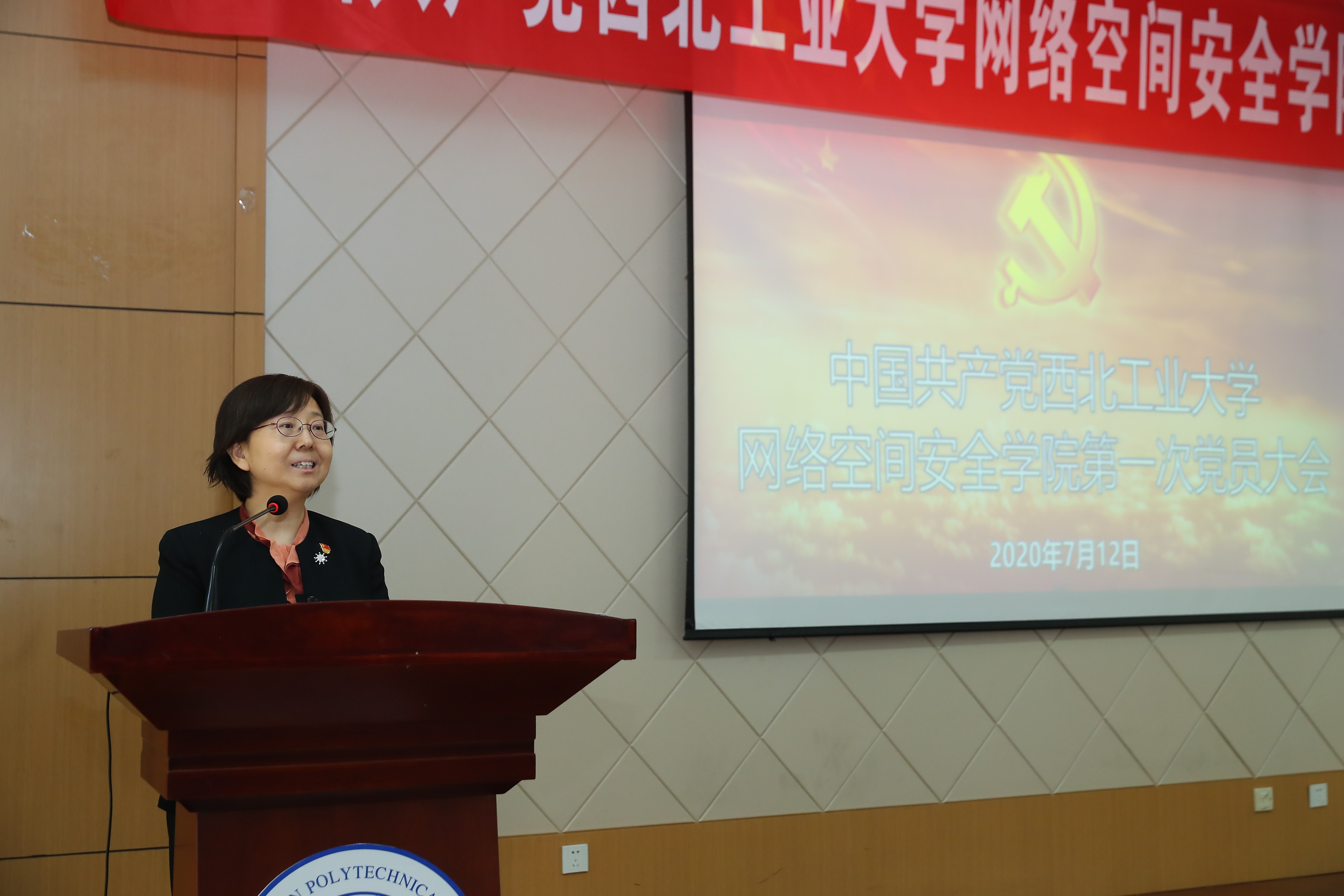 张艳宁同志代表学校党委向大会的胜利召开表示热烈的祝贺,并对网安学院党政领导班子统筹谋划、孜孜以求、抓铁有痕、敢于攻坚的工作作风及学院在全体师生员工共同努力下取得的显著成绩给予了充分肯定,对学院新一届党总支提出了三点希望:一是希望党总支班子带头加强理论学习,自觉做习近平新时代中国特色社会主义思想的坚定信仰者、积极传播者和模范践行者;二是希望新一届党总支班子带头遵规守纪,始终把纪律和规矩挺在前面,进一步加强作风建设,营造风清气正的干事创业氛围;三是希望新一届党总支班子带头担当作为,同心戮力,改革谋新,牢牢把握网络强国、“新基建”和太仓校区学院建设机遇,在新形势下创造更好的成绩,为学院争创世界一流坚实基础,为早日建成一流网安学院和一流网安学科贡献力量。
